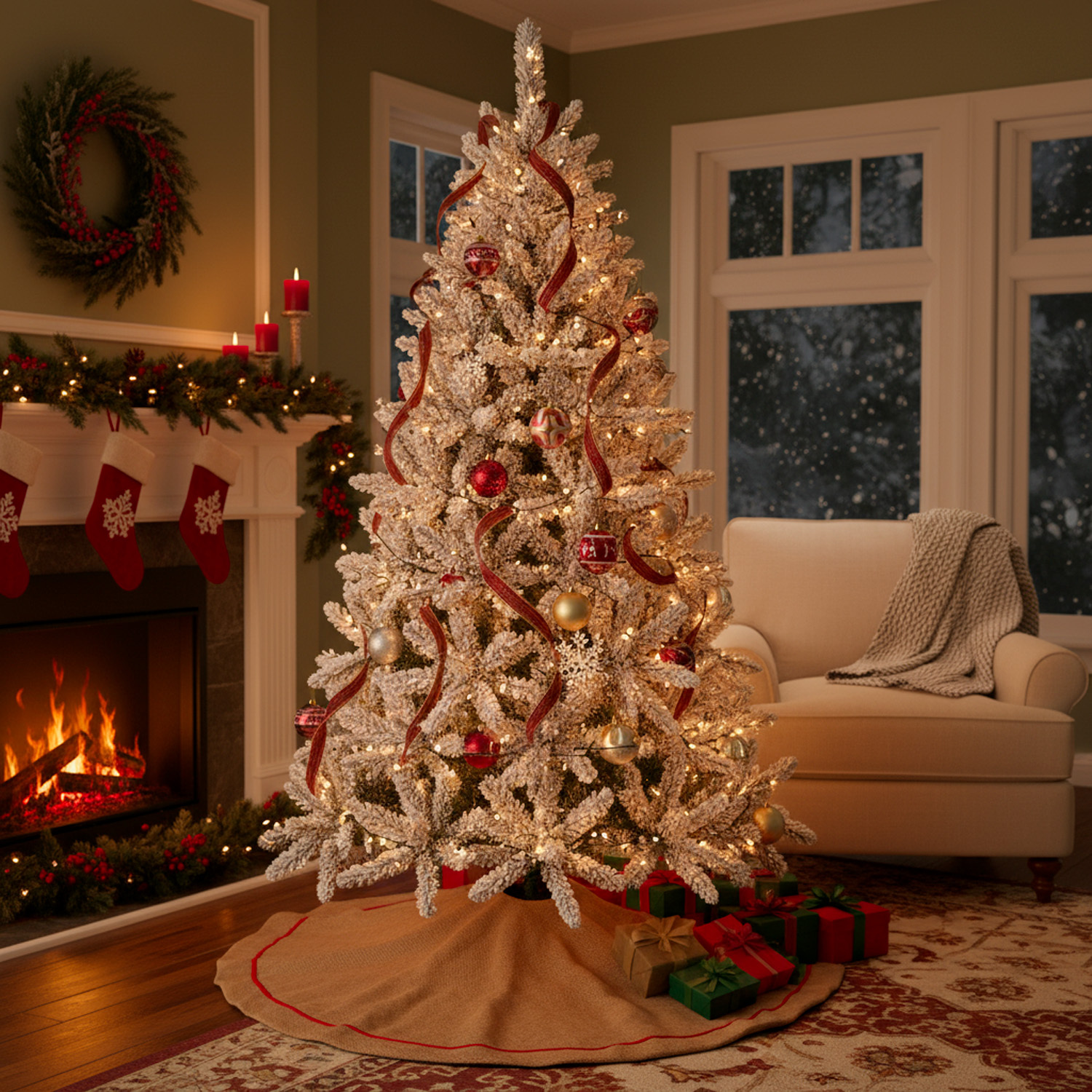 da un delicato effetto neve, ricrea alla perfezione l’aspetto di un abete naturale appena innevato.