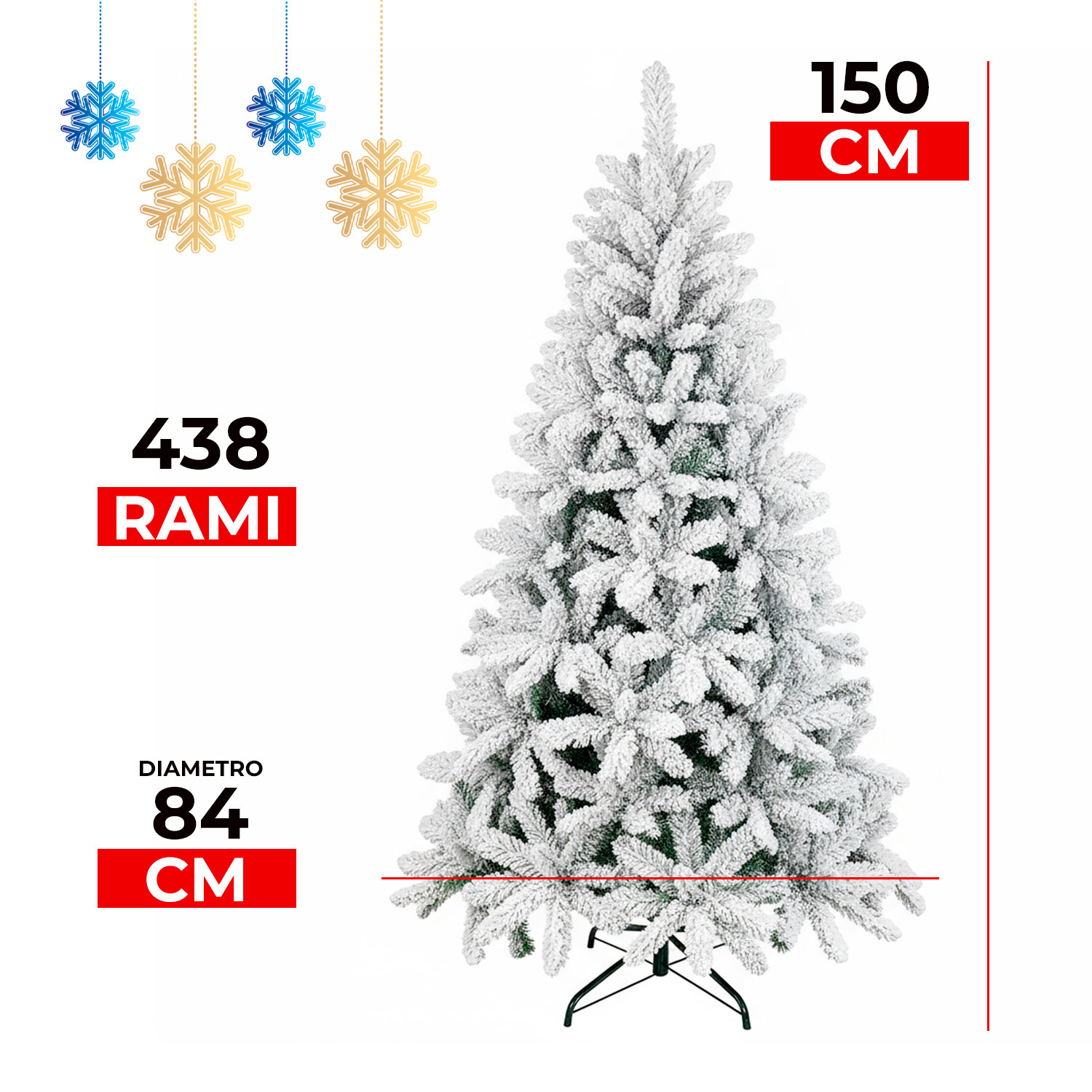 Albero Di Natale Innevato 150 Cm Con Sacca Effetto Reale 438 Rami Foltissimo Molto Folto Rami A Ombrello Base A Croce Sicura In Metallo Doppia Foglia Colorata In PVC Abete Natalizio (150 Cm 438 Rami)